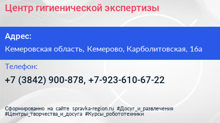 Центр гигиенической экспертизы по адресу Кемеровская область, Кемерово, Карболитовская, 16а в дальнейшем Организация, размещена в следующих категориях: