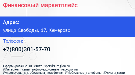 Финансовый маркетплейс по адресу улица Свободы, 17, Кемерово в дальнейшем Организация, размещена в следующих категориях: