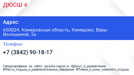 ДЮСШ №4 по адресу 650024, Кемеровская область, Кемерово, Веры Волошиной, 5а в дальнейшем Организация, размещена в следующих категориях: