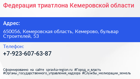 Федерация триатлона Кемеровской области по адресу 650056, Кемеровская область, Кемерово, бульвар Строителей, 53 в дальнейшем Организация, размещена в следующих категориях: