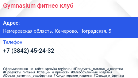 Gymnasium, фитнес-клуб по адресу Кемеровская область, Кемерово, Ноградская, 5 в дальнейшем Организация, размещена в следующих категориях: