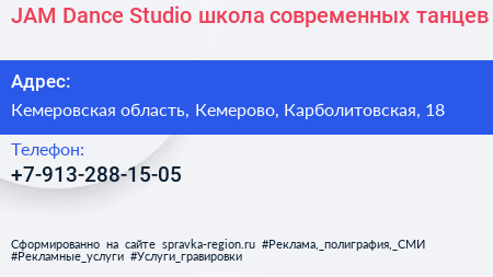 JAM Dance Studio, школа современных танцев по адресу Кемеровская область, Кемерово, Карболитовская, 18 в дальнейшем Организация, размещена в следующих категориях: