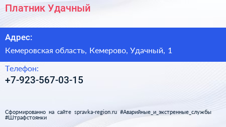 Платник Удачный по адресу Кемеровская область, Кемерово, Удачный, 1 в дальнейшем Организация, размещена в следующих категориях: