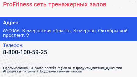 ProFitness, сеть тренажерных залов по адресу 650066, Кемеровская область, Кемерово, Октябрьский проспект, 9 в дальнейшем Организация, размещена в следующих категориях: