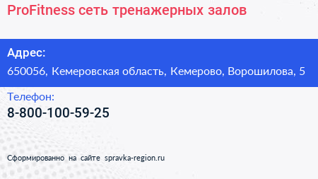 ProFitness, сеть тренажерных залов по адресу 650056, Кемеровская область, Кемерово, Ворошилова, 5 в дальнейшем Организация, размещена в следующих категориях: