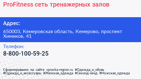 ProFitness, сеть тренажерных залов по адресу 650003, Кемеровская область, Кемерово, проспект Химиков, 41 в дальнейшем Организация, размещена в следующих категориях:
