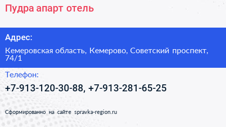 Пудра, апарт-отель по адресу Кемеровская область, Кемерово, Советский проспект, 74/1 в дальнейшем Организация, размещена в следующих категориях: