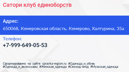 Сатори, клуб единоборств по адресу 650068, Кемеровская область, Кемерово, Халтурина, 35а в дальнейшем Организация, размещена в следующих категориях: