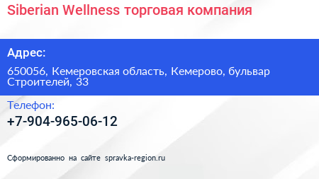Siberian Wellness, торговая компания по адресу 650056, Кемеровская область, Кемерово, бульвар Строителей, 33 в дальнейшем Организация, размещена в следующих категориях: