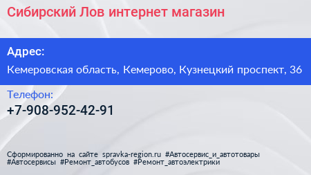 Сибирский Лов, интернет-магазин по адресу Кемеровская область, Кемерово, Кузнецкий проспект, 36 в дальнейшем Организация, размещена в следующих категориях: