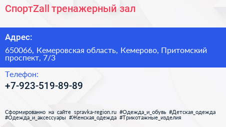 СпортZall, тренажерный зал по адресу 650066, Кемеровская область, Кемерово, Притомский проспект, 7/3 в дальнейшем Организация, размещена в следующих категориях: