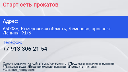 Старт, сеть прокатов по адресу 650036, Кемеровская область, Кемерово, проспект Ленина, 91/6 в дальнейшем Организация, размещена в следующих категориях: