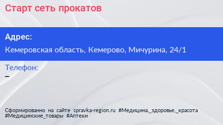Старт, сеть прокатов по адресу Кемеровская область, Кемерово, Мичурина, 24/1 в дальнейшем Организация, размещена в следующих категориях: