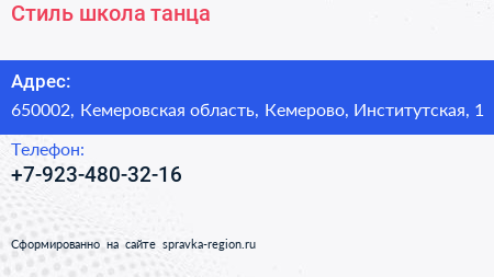 Стиль, школа танца по адресу 650002, Кемеровская область, Кемерово, Институтская, 1 в дальнейшем Организация, размещена в следующих категориях: