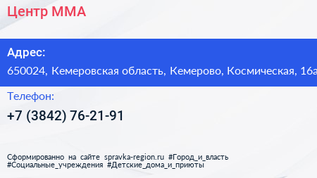 Центр ММА по адресу 650024, Кемеровская область, Кемерово, Космическая, 16а в дальнейшем Организация, размещена в следующих категориях: