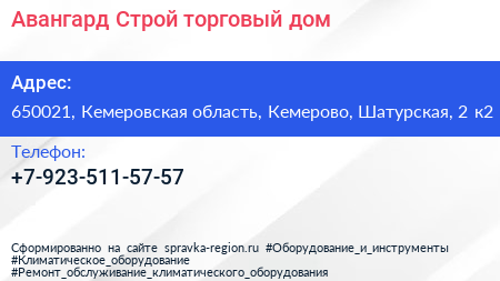 Авангард-Строй, торговый дом по адресу 650021, Кемеровская область, Кемерово, Шатурская, 2 к2 в дальнейшем Организация, размещена в следующих категориях: