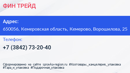 ФИН-ТРЕЙД по адресу 650056, Кемеровская область, Кемерово, Ворошилова, 25 в дальнейшем Организация, размещена в следующих категориях: