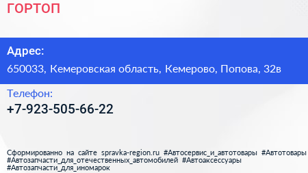 ГОРТОП по адресу 650033, Кемеровская область, Кемерово, Попова, 32в в дальнейшем Организация, размещена в следующих категориях: