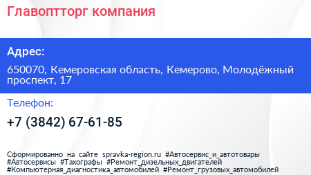 Главоптторг, компания по адресу 650070, Кемеровская область, Кемерово, Молодёжный проспект, 17 в дальнейшем Организация, размещена в следующих категориях: