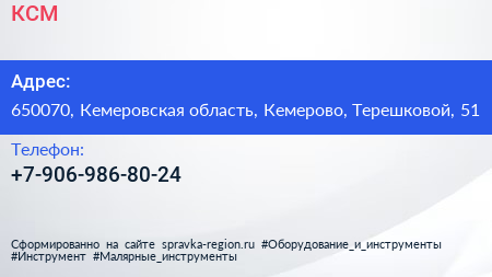 КСМ по адресу 650070, Кемеровская область, Кемерово, Терешковой, 51 в дальнейшем Организация, размещена в следующих категориях:
