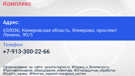 Комплекс по адресу 650036, Кемеровская область, Кемерово, проспект Ленина, 90/5 в дальнейшем Организация, размещена в следующих категориях: