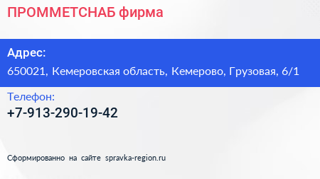 ПРОММЕТСНАБ, фирма по адресу 650021, Кемеровская область, Кемерово, Грузовая, 6/1 в дальнейшем Организация, размещена в следующих категориях: