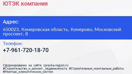 ЮТЭК, компания по адресу 650023, Кемеровская область, Кемерово, Московский проспект, 8 в дальнейшем Организация, размещена в следующих категориях: