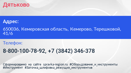 Дятьково по адресу 650036, Кемеровская область, Кемерово, Терешковой, 41/6 в дальнейшем Организация, размещена в следующих категориях: