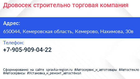 Дровосек, строительно-торговая компания по адресу 650044, Кемеровская область, Кемерово, Нахимова, 30в в дальнейшем Организация, размещена в следующих категориях: