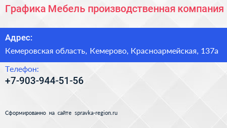 Графика Мебель, производственная компания по адресу Кемеровская область, Кемерово, Красноармейская, 137а в дальнейшем Организация, размещена в следующих категориях: