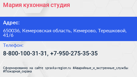 Мария, кухонная студия по адресу 650036, Кемеровская область, Кемерово, Терешковой, 41/6 в дальнейшем Организация, размещена в следующих категориях: