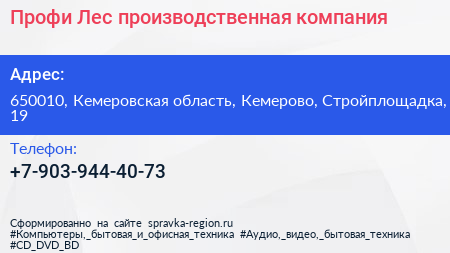 Профи Лес, производственная компания по адресу 650010, Кемеровская область, Кемерово, Стройплощадка, 19 в дальнейшем Организация, размещена в следующих категориях: