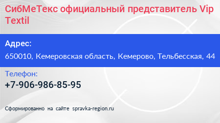 СибМеТекс, официальный представитель Vip Textil по адресу 650010, Кемеровская область, Кемерово, Тельбесская, 44 в дальнейшем Организация, размещена в следующих категориях: