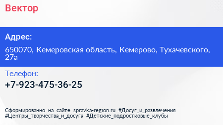 Вектор по адресу 650070, Кемеровская область, Кемерово, Тухачевского, 27а в дальнейшем Организация, размещена в следующих категориях: