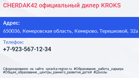 CHERDAK42, официальный дилер KROKS по адресу 650036, Кемеровская область, Кемерово, Терешковой, 32а в дальнейшем Организация, размещена в следующих категориях: