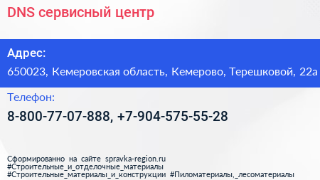 DNS, сервисный центр по адресу 650023, Кемеровская область, Кемерово, Терешковой, 22а в дальнейшем Организация, размещена в следующих категориях: