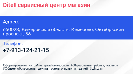 Ditell, сервисный центр-магазин по адресу 650023, Кемеровская область, Кемерово, Октябрьский проспект, 56 в дальнейшем Организация, размещена в следующих категориях: