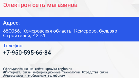 Электрон, сеть магазинов по адресу 650056, Кемеровская область, Кемерово, бульвар Строителей, 42 к1 в дальнейшем Организация, размещена в следующих категориях:
