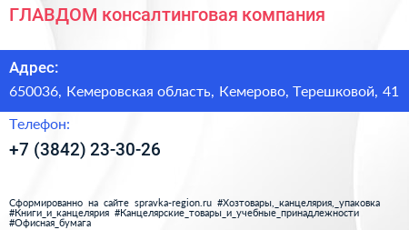 ГЛАВДОМ, консалтинговая компания по адресу 650036, Кемеровская область, Кемерово, Терешковой, 41 в дальнейшем Организация, размещена в следующих категориях: