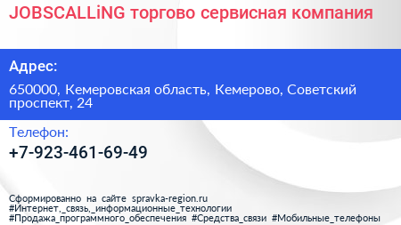 JOBSCALLiNG, торгово-сервисная компания по адресу 650000, Кемеровская область, Кемерово, Советский проспект, 24 в дальнейшем Организация, размещена в следующих категориях: