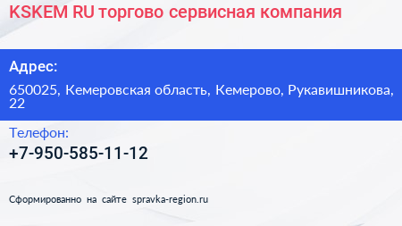 KSKEM.RU, торгово-сервисная компания по адресу 650025, Кемеровская область, Кемерово, Рукавишникова, 22 в дальнейшем Организация, размещена в следующих категориях: