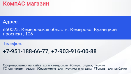 КомпАС, магазин по адресу 650025, Кемеровская область, Кемерово, Кузнецкий проспект, 106 в дальнейшем Организация, размещена в следующих категориях: