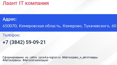 Лаант, IT-компания по адресу 650070, Кемеровская область, Кемерово, Тухачевского, 60 в дальнейшем Организация, размещена в следующих категориях: