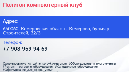 Полигон, компьютерный клуб по адресу 650060, Кемеровская область, Кемерово, бульвар Строителей, 32/3 в дальнейшем Организация, размещена в следующих категориях: