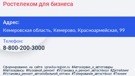 Ростелеком для бизнеса по адресу Кемеровская область, Кемерово, Красноармейская, 99 в дальнейшем Организация, размещена в следующих категориях: