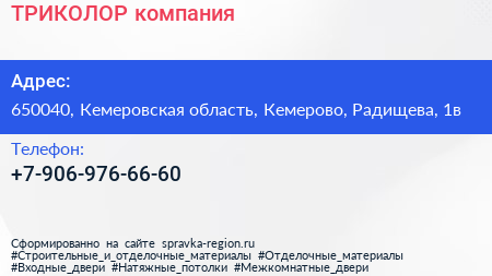 ТРИКОЛОР, компания по адресу 650040, Кемеровская область, Кемерово, Радищева, 1в в дальнейшем Организация, размещена в следующих категориях: