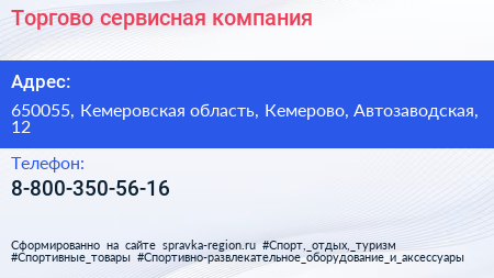 Торгово-сервисная компания по адресу 650055, Кемеровская область, Кемерово, Автозаводская, 12 в дальнейшем Организация, размещена в следующих категориях: