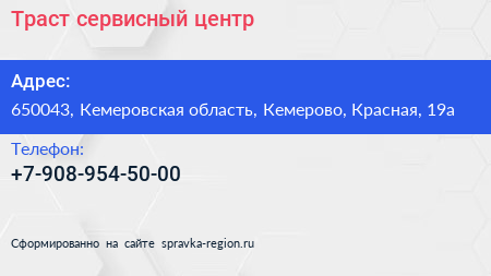 Траст, сервисный центр по адресу 650043, Кемеровская область, Кемерово, Красная, 19а в дальнейшем Организация, размещена в следующих категориях: