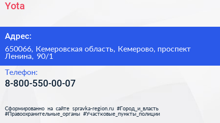 Yota по адресу 650066, Кемеровская область, Кемерово, проспект Ленина, 90/1 в дальнейшем Организация, размещена в следующих категориях: