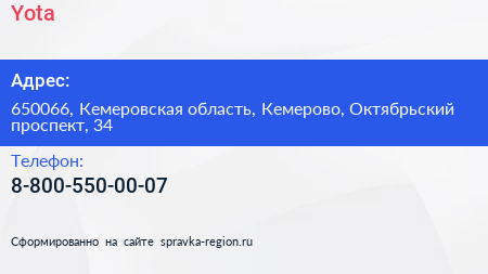 Yota по адресу 650066, Кемеровская область, Кемерово, Октябрьский проспект, 34 в дальнейшем Организация, размещена в следующих категориях: